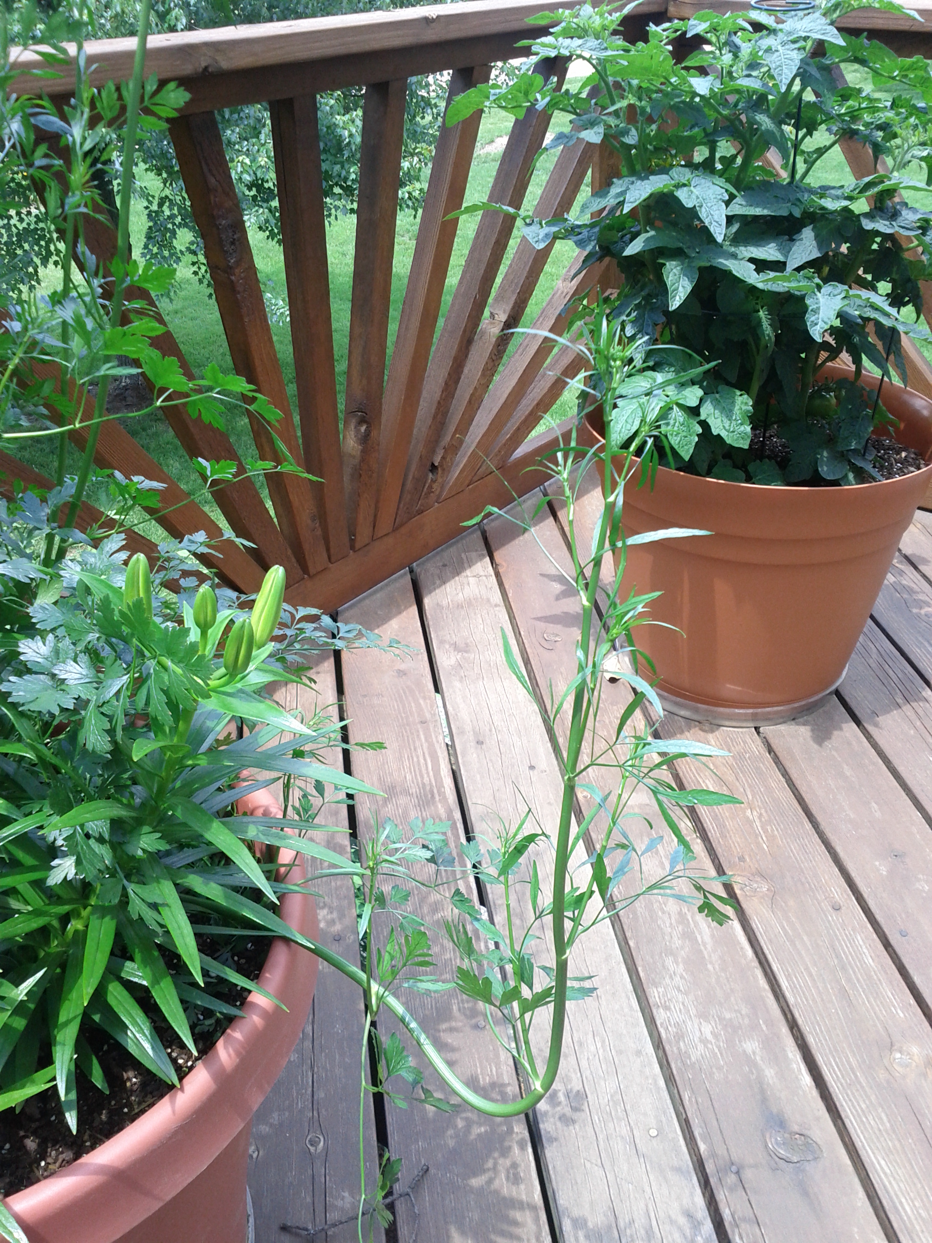 That’s putting it mildly. In our little container, the plant that topped out around 8 or 12 inches in height last summer has now bolted to a majestic four-and-a-half feet – and it’s not even mid-June.