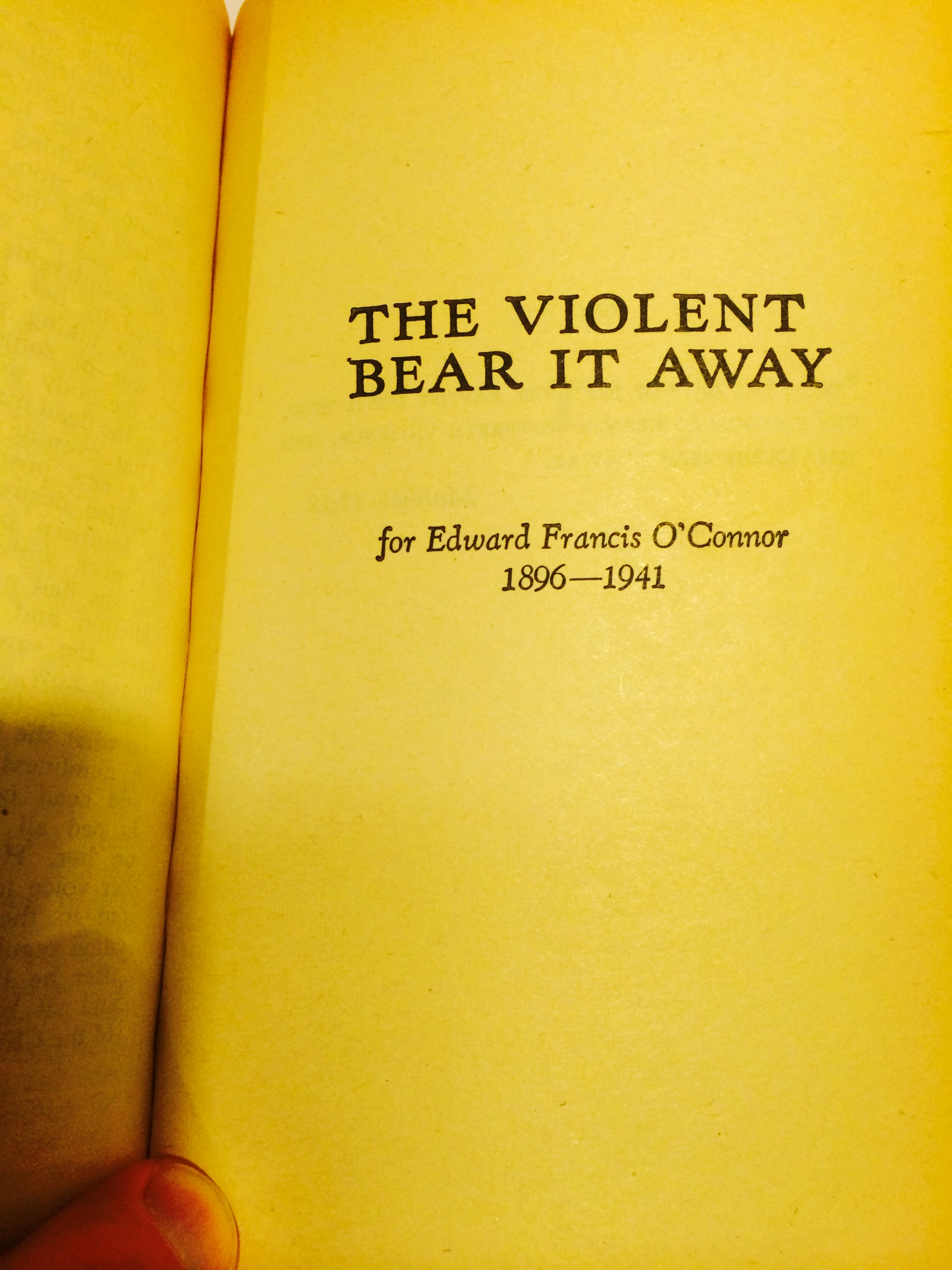 Flannery, of course, famously borrowed the last portion of that passage, using it as the title for one of her most acclaimed novels: The Violent Bear It Away.