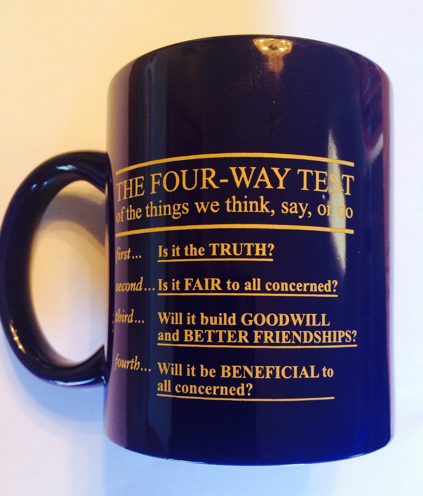 When I got home and took a closer look at the coffee mug I’d received, I realized it was the club’s chance to return the favor. On it was imprinted a copy of the organization’s Four-Way Test: