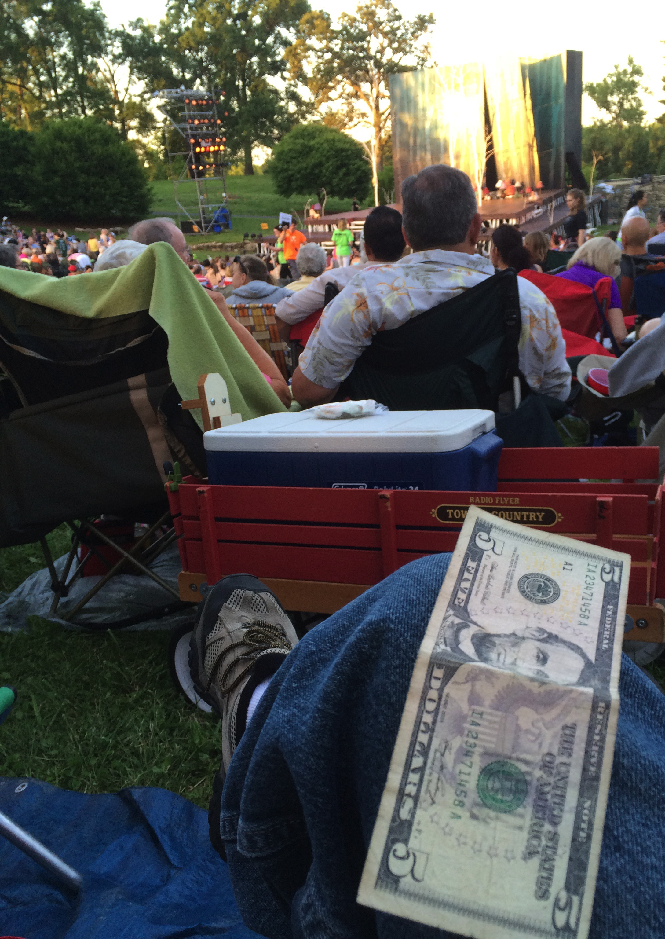 Or perhaps it was intended as a sort of pay-it-forward, spread-joy-the-joy kind of gesture. In which case, the donor may be interested to learn that the half-sawbuck made its way that very evening into the free-will-offering canister at Shakespeare In The Park. ‘If we shadows have offended / think but this, and all is mended…’