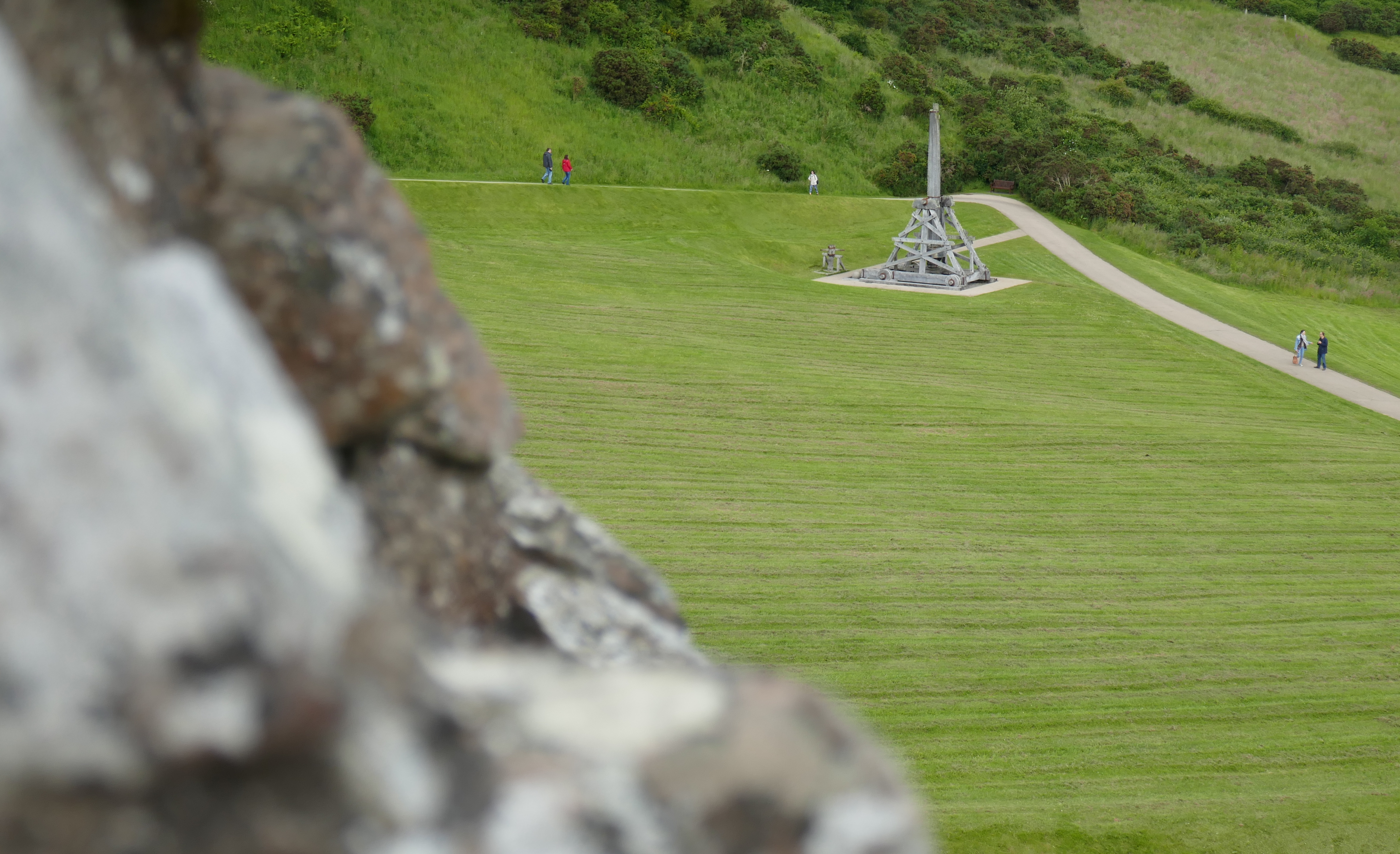 Cool castle. REALLY cool: Urqhhart comes complete with a moat (now dry); ramparts; a gatehouse; and a trebuchet (or war engine) lurking in the distance…a reminder of the long-ago siege(s) that ultimately brought the fortification to its knees.