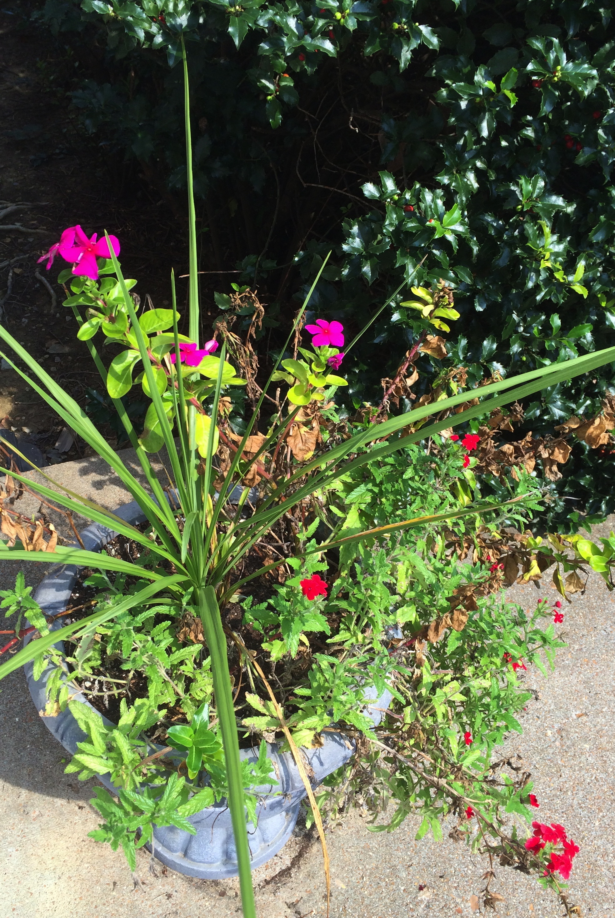 We’ve reached the tipping point, I think, with the annuals that adorn the planters on our front porch. After giving us a summer of vigorously contained beauty, the blooms are just about tuckered out heading into these last days of September.