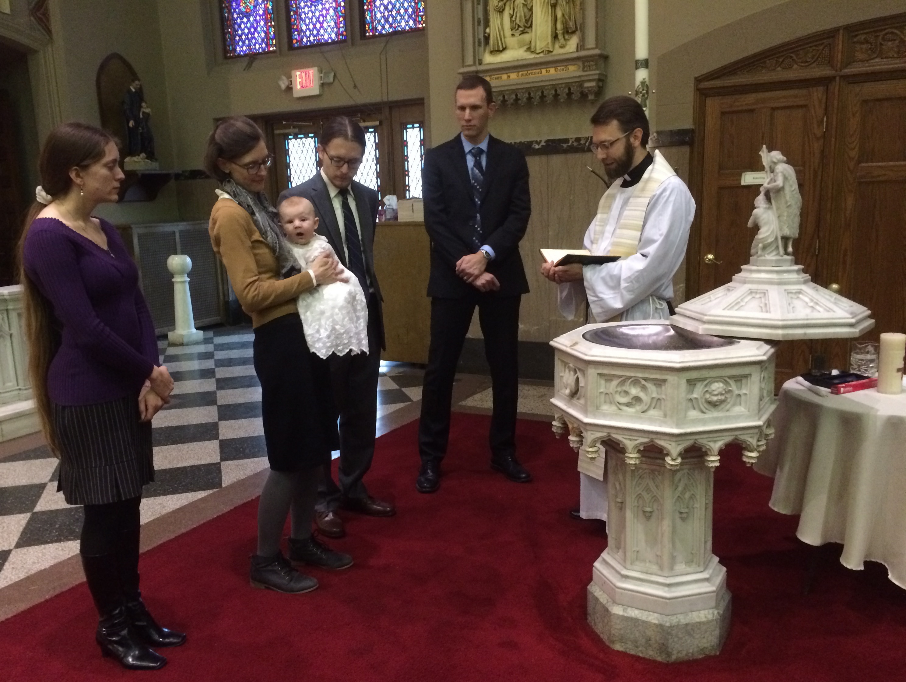 Francis is a little on the young side to get all that, of course. But I suppose that’s why he has loving parents…and Godparents…and grandparents…and really, the whole family at his side. We shiver empathetically with him as the water splashes across his face. And then we stick around to tell the tale, a band of loving long-term witnesses to his baptismal day.