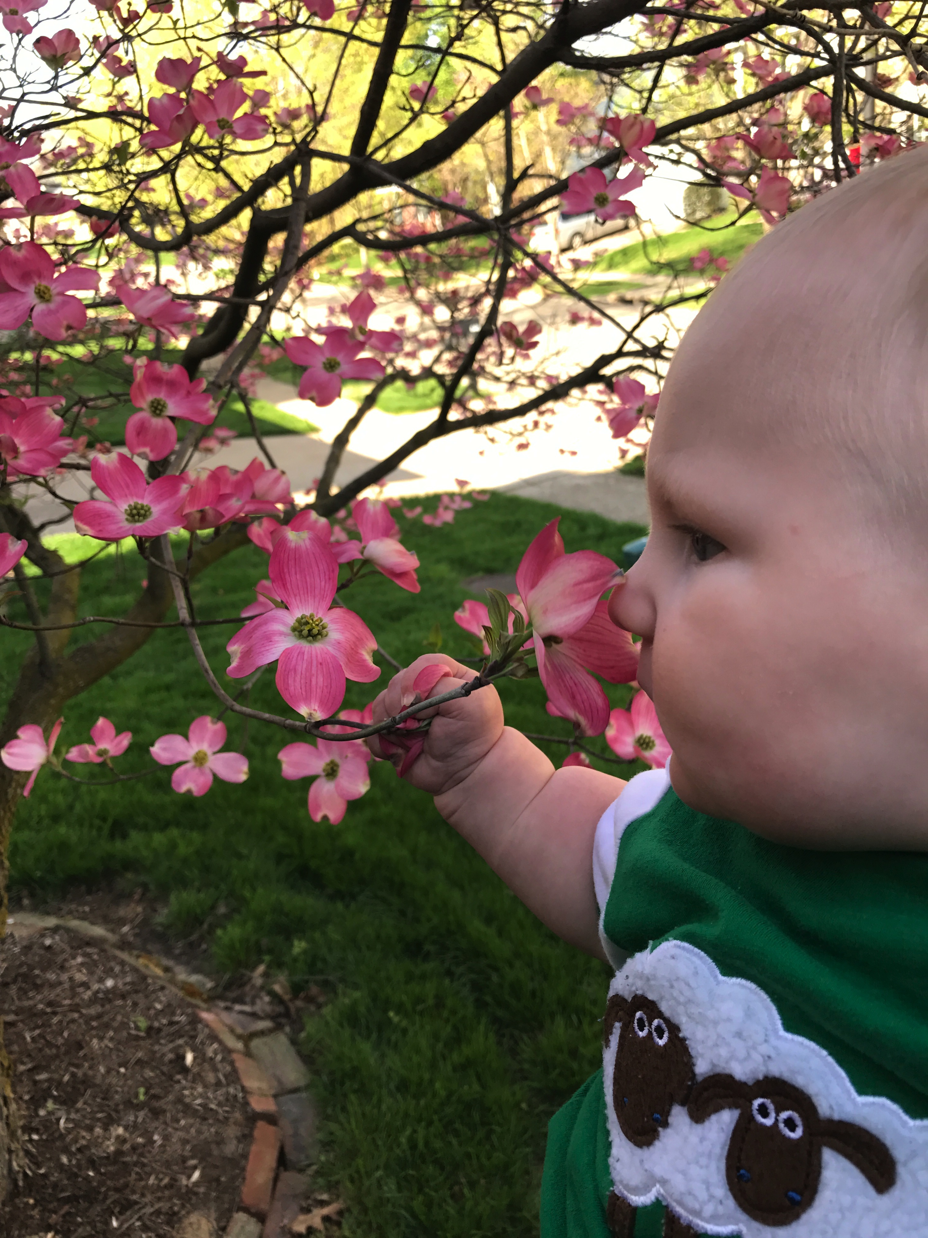 I was fascinated by this little one’s first-ever experience of dogwood-in-bloom—in part, because it reminded me of the slender volume I’ve been reading this week: François Mauriac’s Holy Thursday, An Intimate Remembrance.