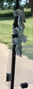 Hence the TGD: A well-equipped linkster (like my partner) can rotate through a set of gloves…giving the first a chance to dry out a bit as he swings using the second or third. And in between shots? Hang ‘em all out to dry, so they can catch a breeze on the way to the ball.
