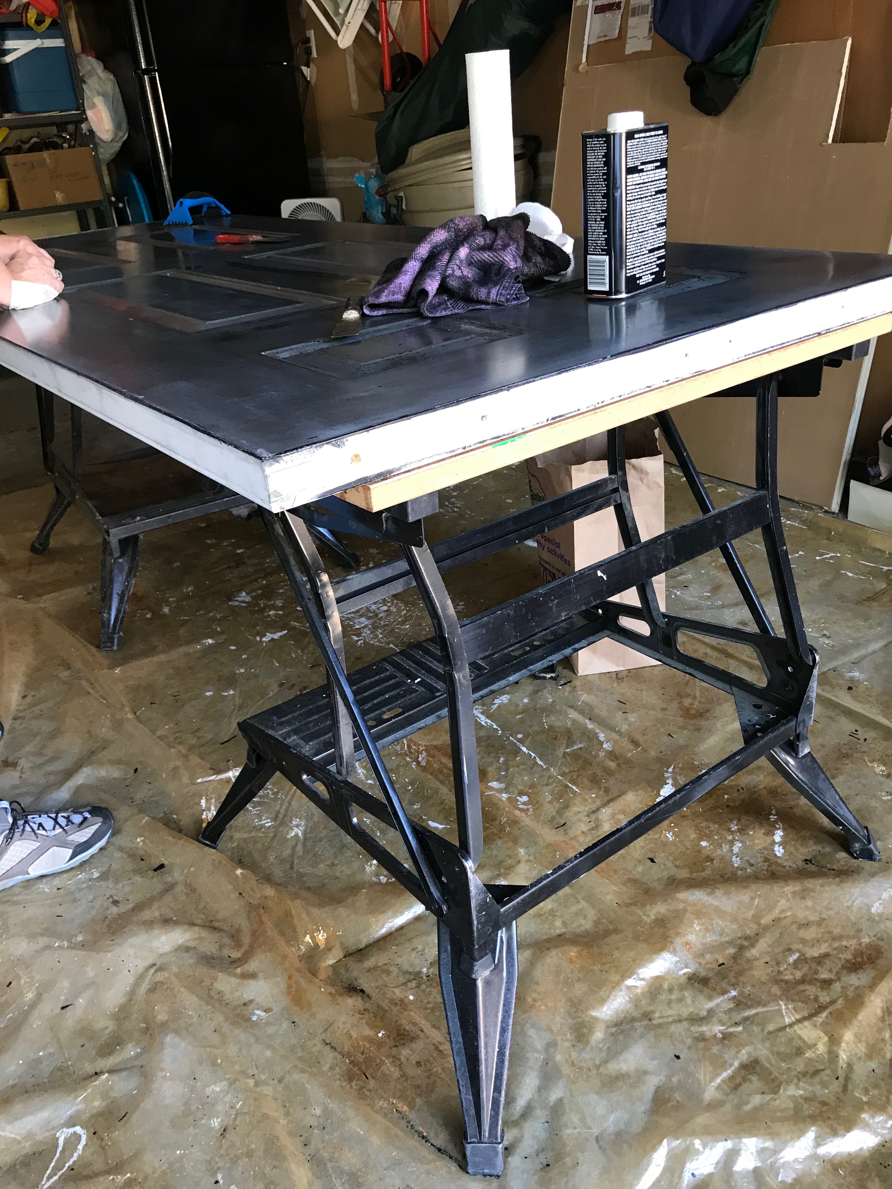 By late week, I realized that I’d put quite enough effort into studying the issue. It was time to go all-out-Nike on my door, and Just Do It. A day and a half later, Gerri and I had gotten the surface prepared – scraping and scrubbing away the old paint, until only bare-metal remained. Which is exactly what I mean about such projects: It took a day-and-a-half for us to accomplish a task that, on YouTube, gets wrapped up in five to seven minutes. Sheesh.