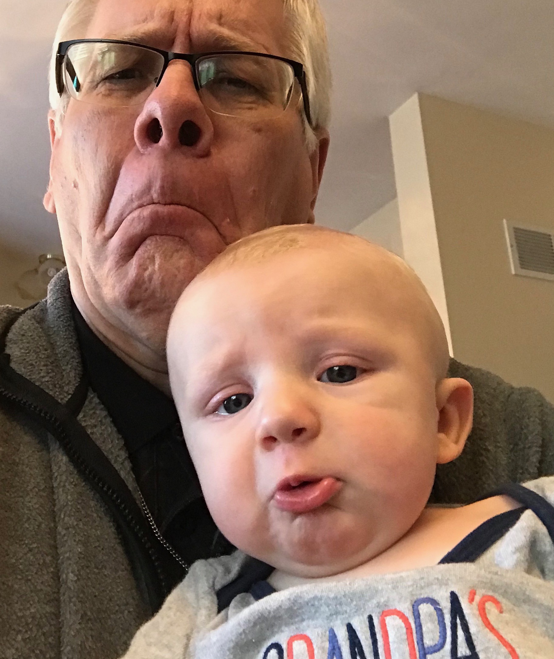 So just before tending to our grandson’s budding whimper, I managed to click a quick selfie (perhaps inadvertently documenting a genetic component to the little guy’s sometimes fretful outlook).