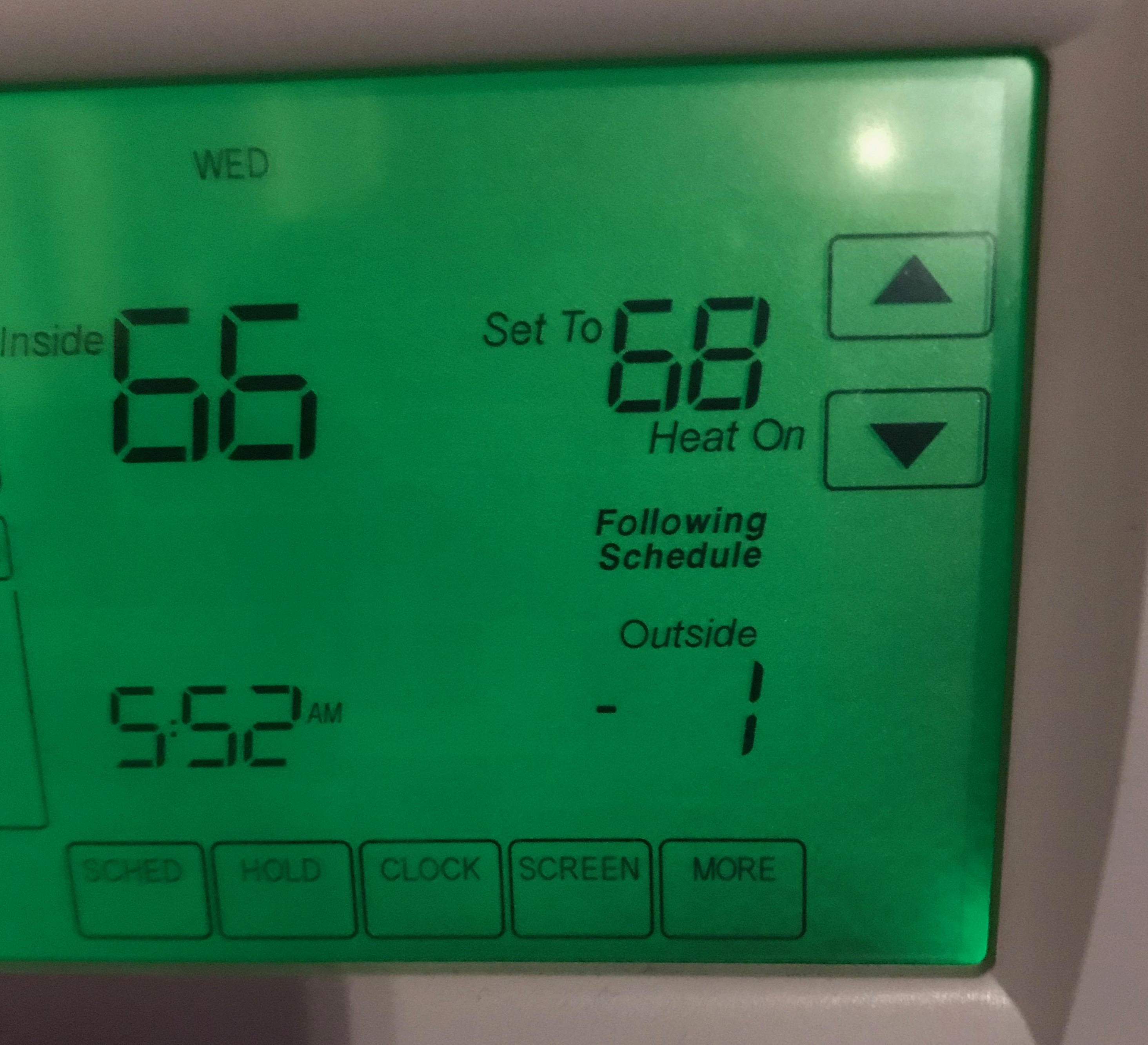 It was bracing, to say the least, when I checked the “Outside Temp” reading on our home thermostat in the pre-dawn hours this morning. (-1) it said. Then I got in the car…and watched, with bemusement, as the mercury dipped lower and lower throughout my short jaunt up the road.