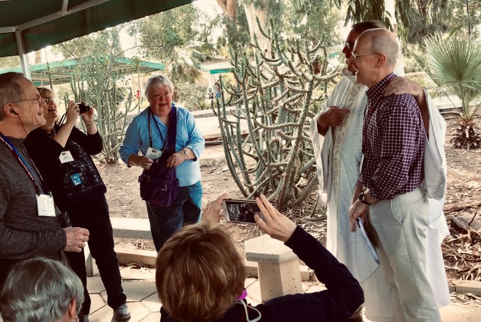 Our pilgrimage leader bumped into an old friend today…atop the Mount of Beatitudes — best-selling author James Martin SJ.