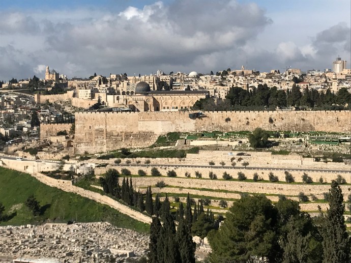 …but no doubt it’s because Gethsemane is just across the valley from the Temple Mount. So Jesus and his disciples could have felt very much connected to the Passover rituals taking place there, without getting caught up in the massive festival crowds “inside the walls.”