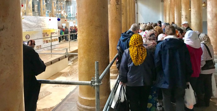 But they couldn’t hold a candle to the line of people we encountered today in Bethlehem…waiting to see and touch the star that marks the place of Jesus’ birth.