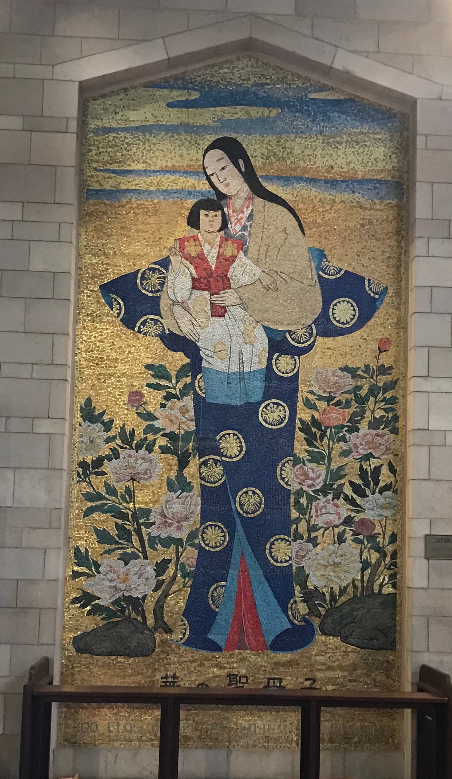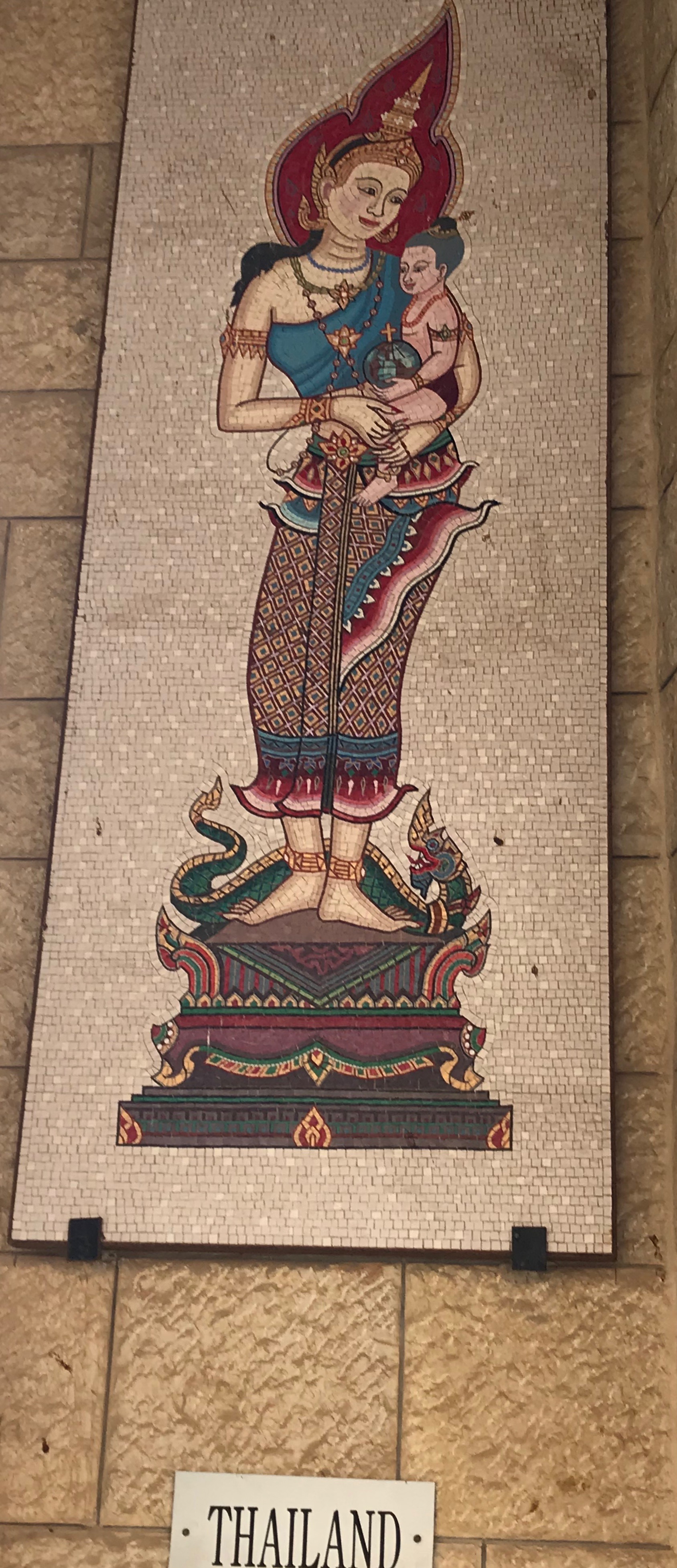 Inside the church and out, walls are adorned with beautiful renderings of the Madonna – most of them reflecting the cultural and artistic traditions of the dozens of countries from which they came. A stunning array of religious art, really: Hearts poured out in tribute to Mary’s “yes!” – a remarkable response, in any language.