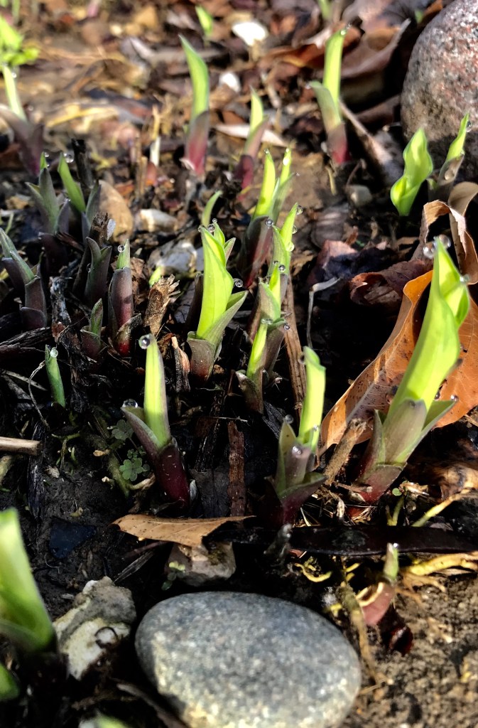 I raked…and raked…and raked…finally collecting what surely must equal an entire biblical sheave of deciduous detritus.A bit more work than I was anticipating, sure. But in the end, I was glad to have gathered up the yard waste…because of the tender spring beauty, once hidden, that my efforts revealed.