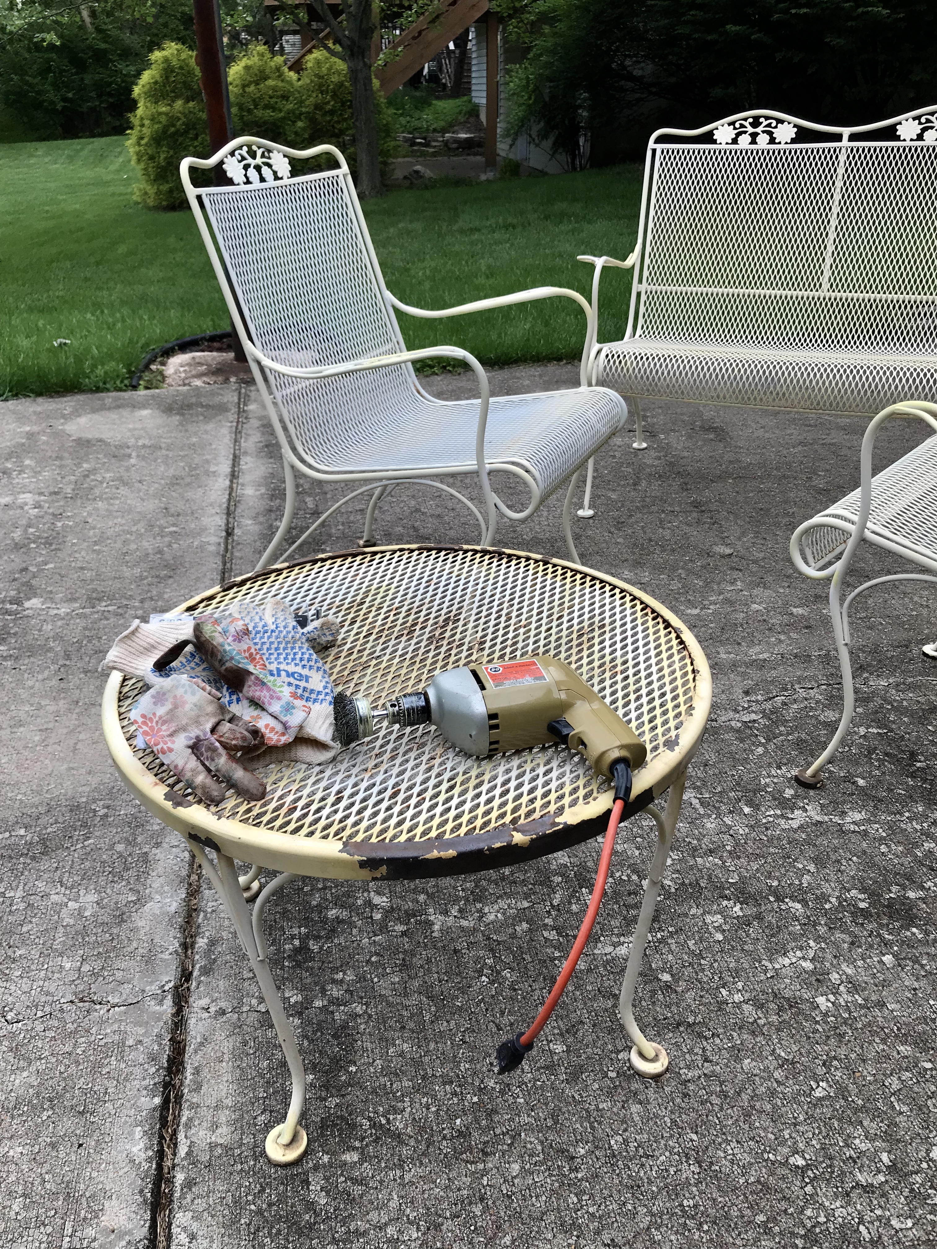 Our patio furniture is sporting a shiny new rust-resistant finish today. And I have the scrapes and bruises to prove it.