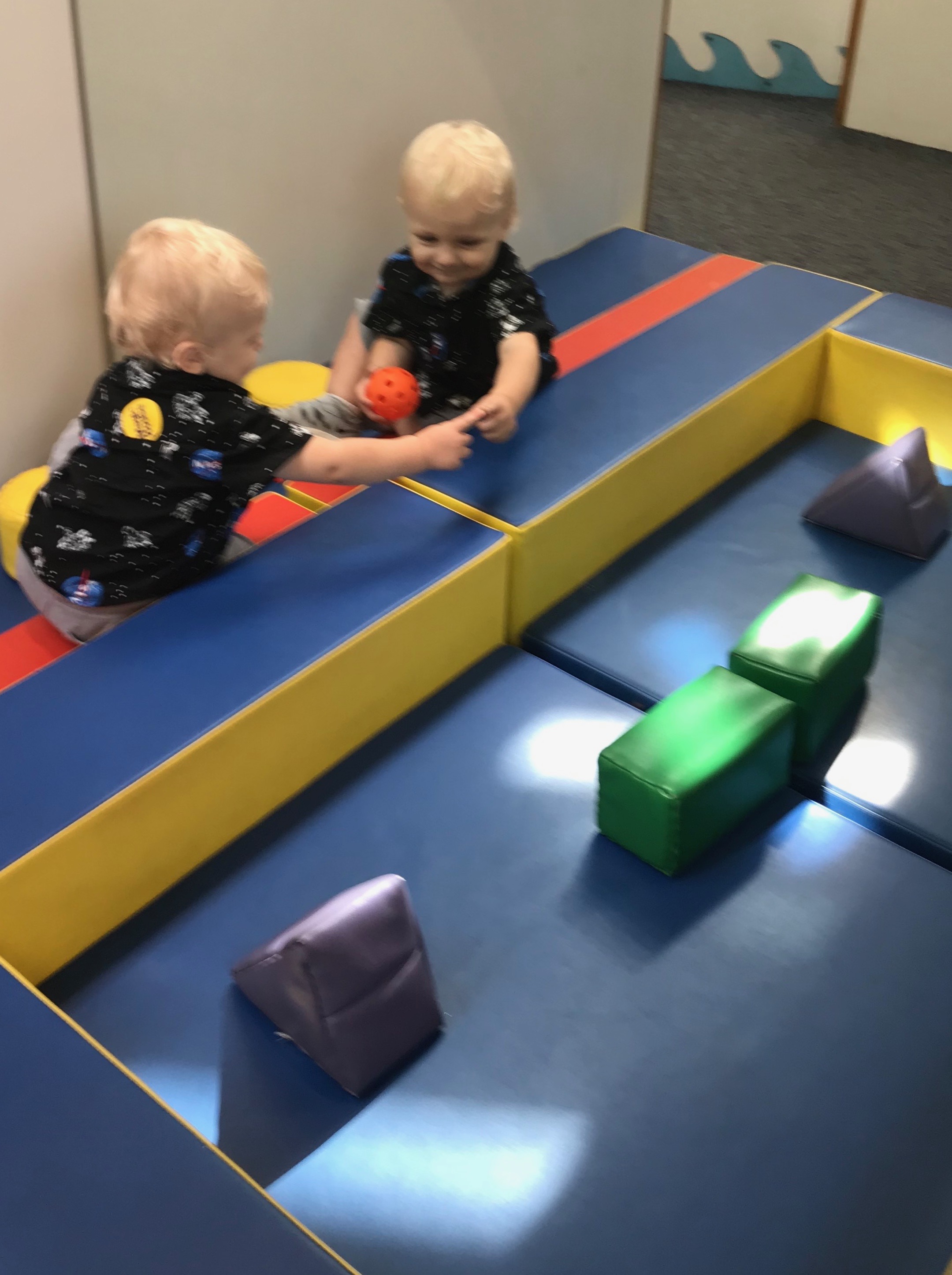 In the early-morning quiet, just before the rug-rat swarm descended, our little Jonah managed to steal some one-on-one time with his life-size reflection.