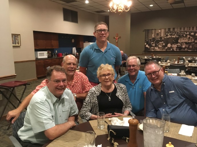For one thing, I kept seeing many other familiar faces in the crowd – folks who have deeply blessed my journey through the years: Friends from the parish. Former teammates from ACTS retreats. Cherished spiritual directors. A long-lost golf mate or two. Not to mention, all four of my blood-brothers and our Mom.