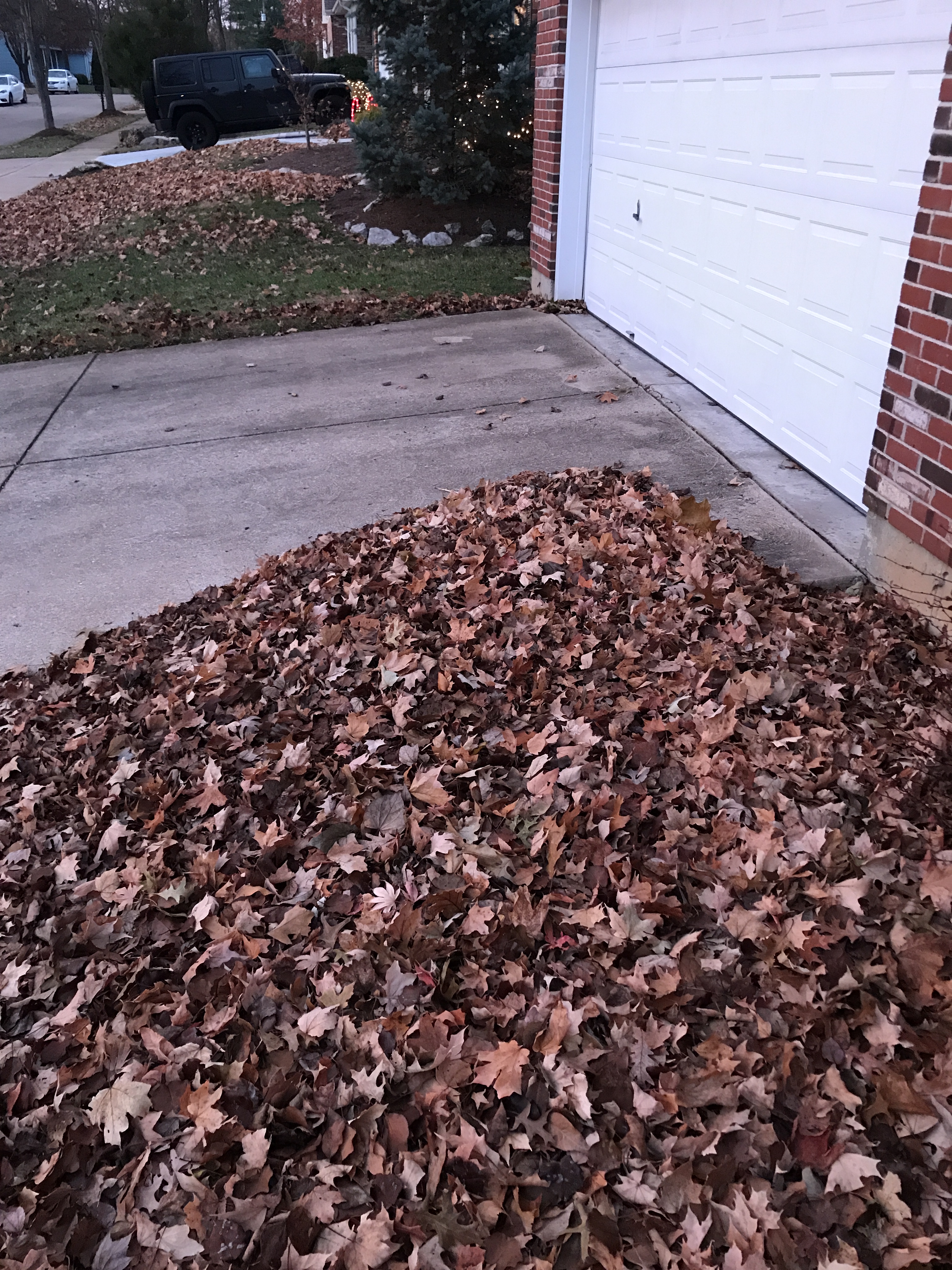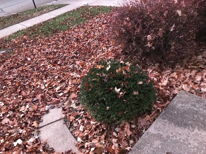 MY leaves…and leaves from several of my NEIGHBORS’ trees have more or less decided to stage a convention out in front of our house. They’re swirling and partying half-a-foot deep, almost completely obscuring the sidewalk.