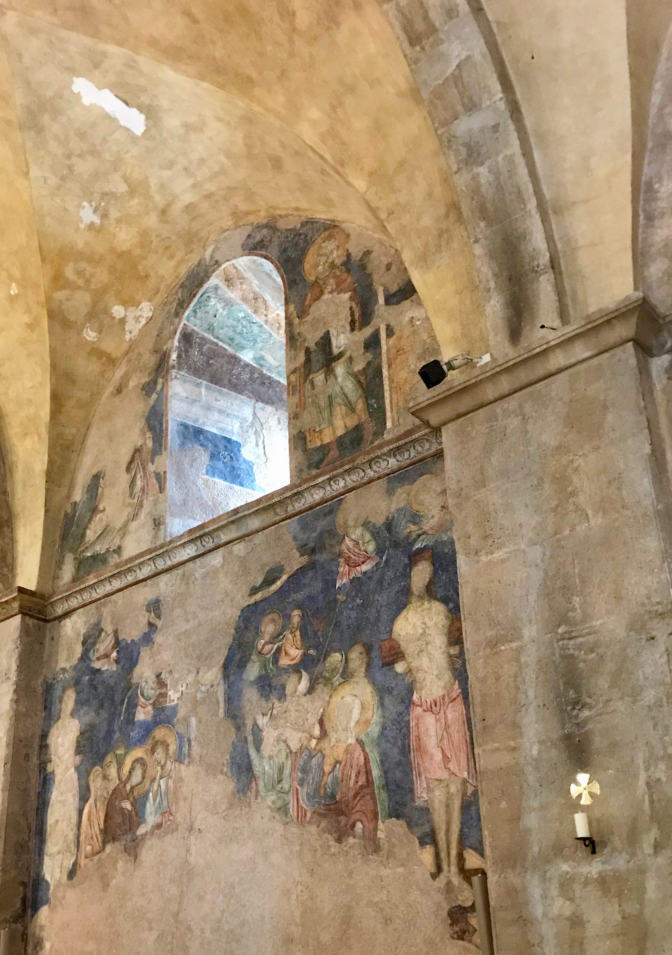 This week’s events reminded me of Isaiah’s promise – and the silent grace I witnessed a few months back in the Holy Land. In the village of Abu Ghosh, just outside Jerusalem, there stands a Crusader-era church – St. Mary of the Resurrection Abbey. It’s notable for the frescoes of holy men and women that adorn the walls…frescoes viciously desecrated by a later generation of religious fanatics.