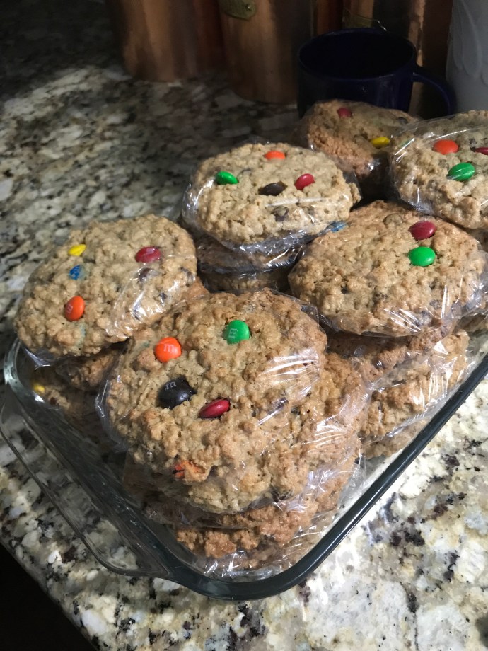 Lingering ever-so-pleasantly in our kitchen this morning: the enticing aroma of homemade Monster Cookies…
