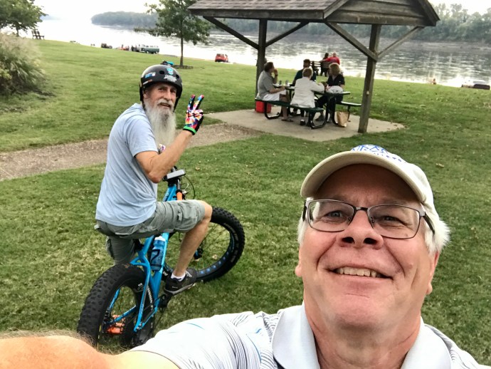 It was just about then, as I sat silently nursing the wound of a long-since-forgiven boyhood sin, that a prophetic figure appeared – a bearded man riding a fat bike, zipping straight up the steep bank and into the park. I did a double-take and then hailed the stranger…who proceeded directly to our picnic pavilion for a chat.