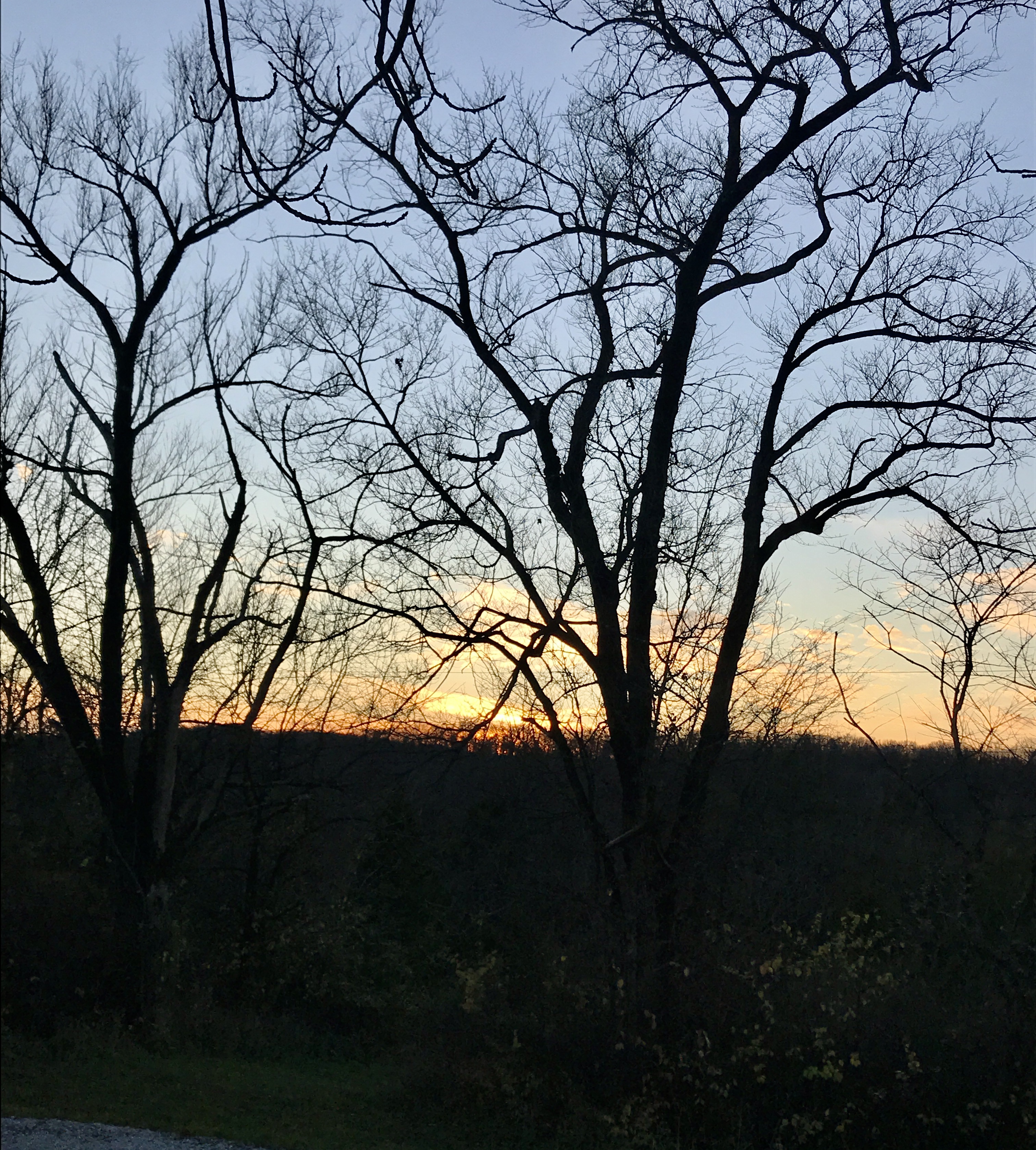 This is beauty easily missed, I realized, because I am not much inclined to spend the sunset-hour outdoors this time of year. The light fades quickly, and a November chill inevitably sets in. Then before you know it, it’s midnight – or so it might appear. The horizon drenched in indigo ink: Surely, it’s late, fast approaching my bedtime.