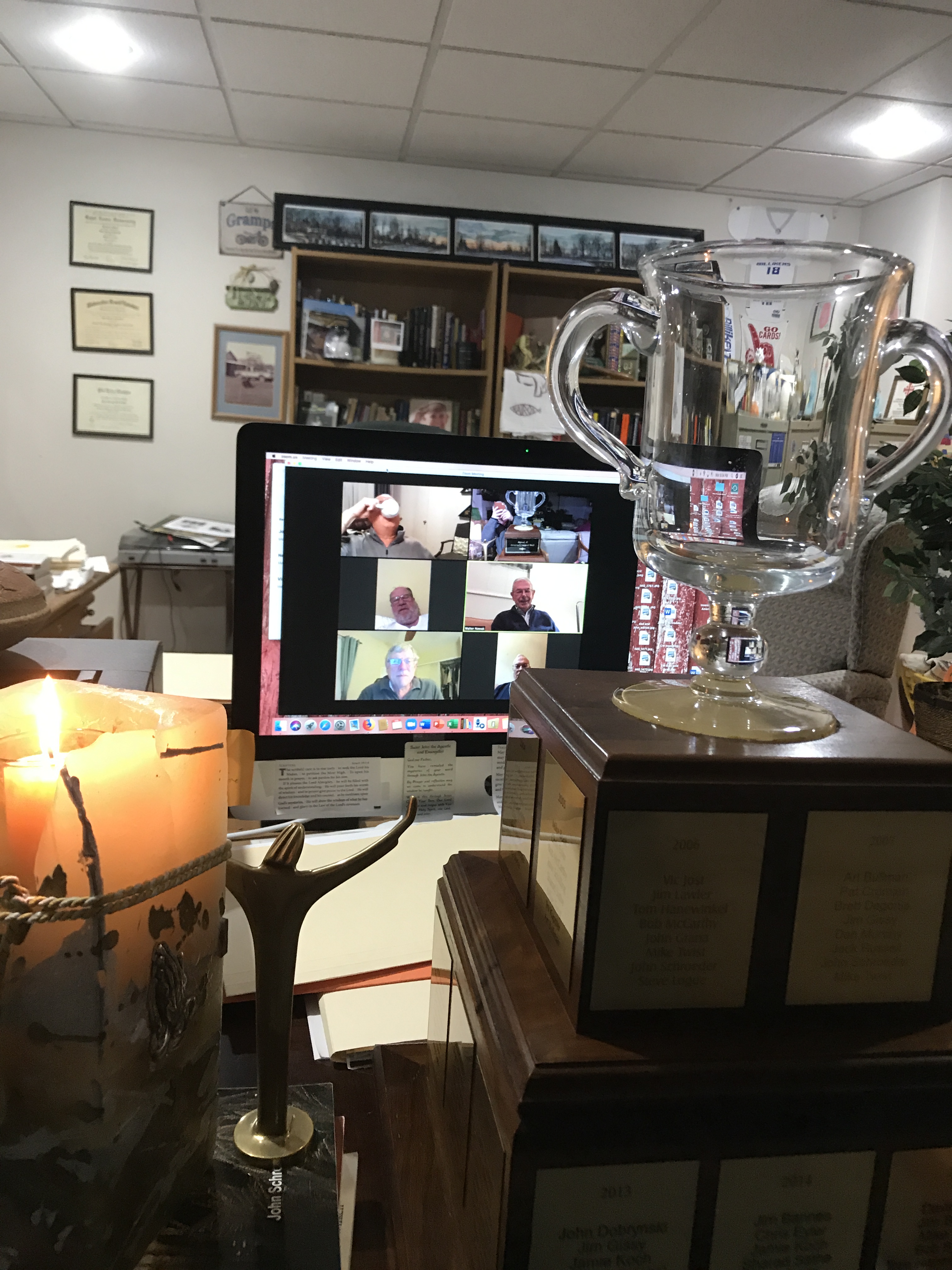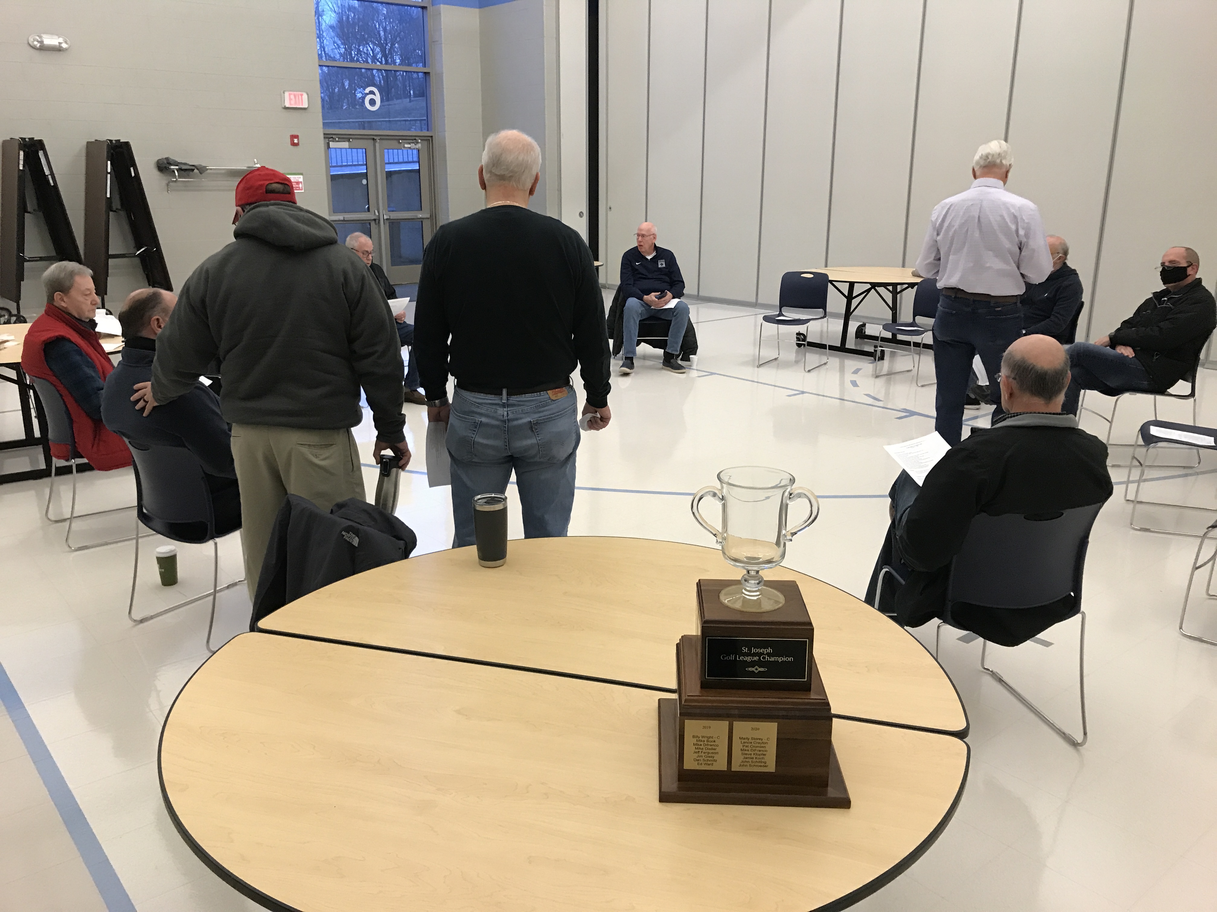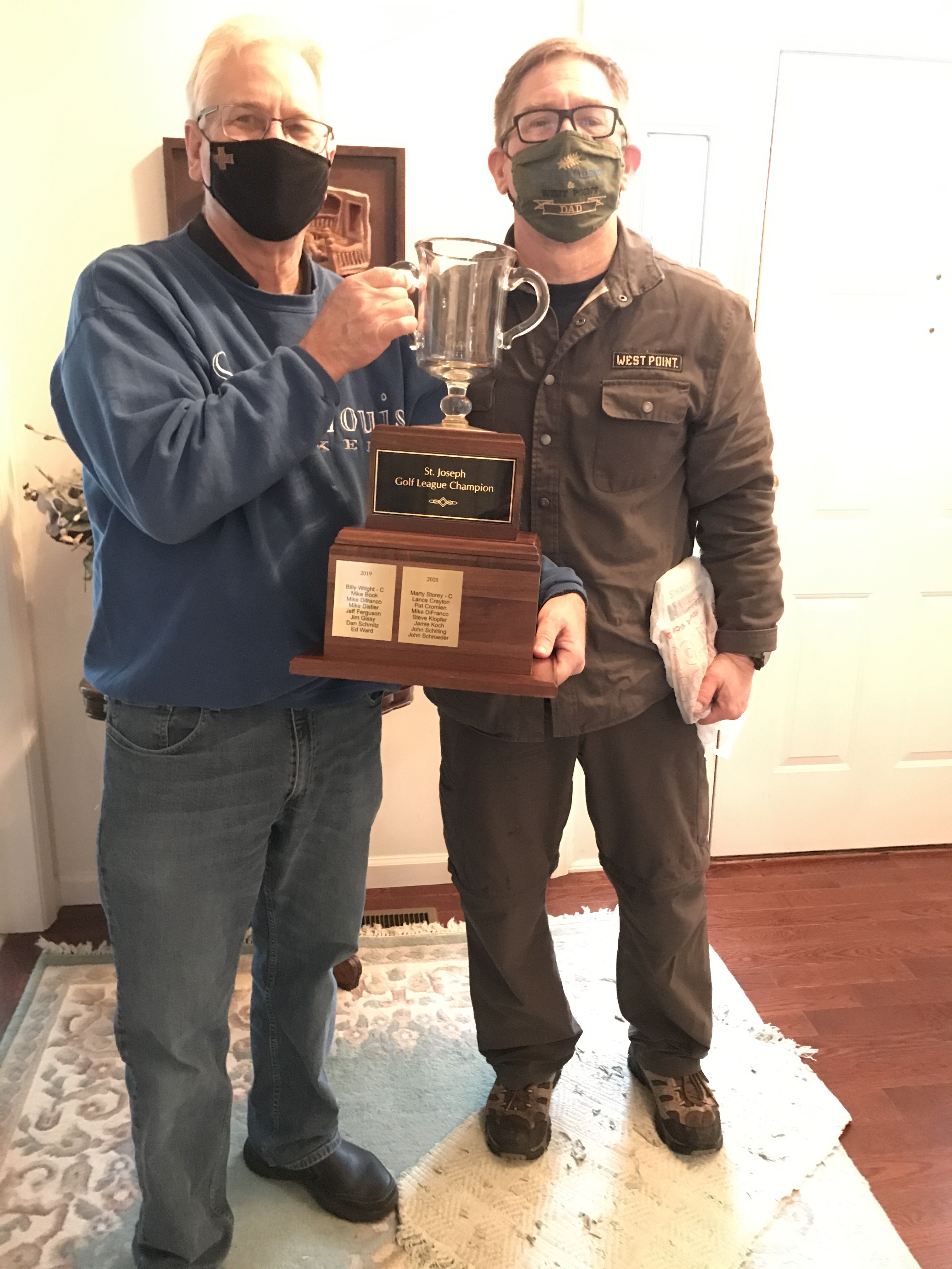 Perhaps a bit to my Sweetie’s regret, I’m having a little trouble making the hand-off of our handsome Golf League Trophy.