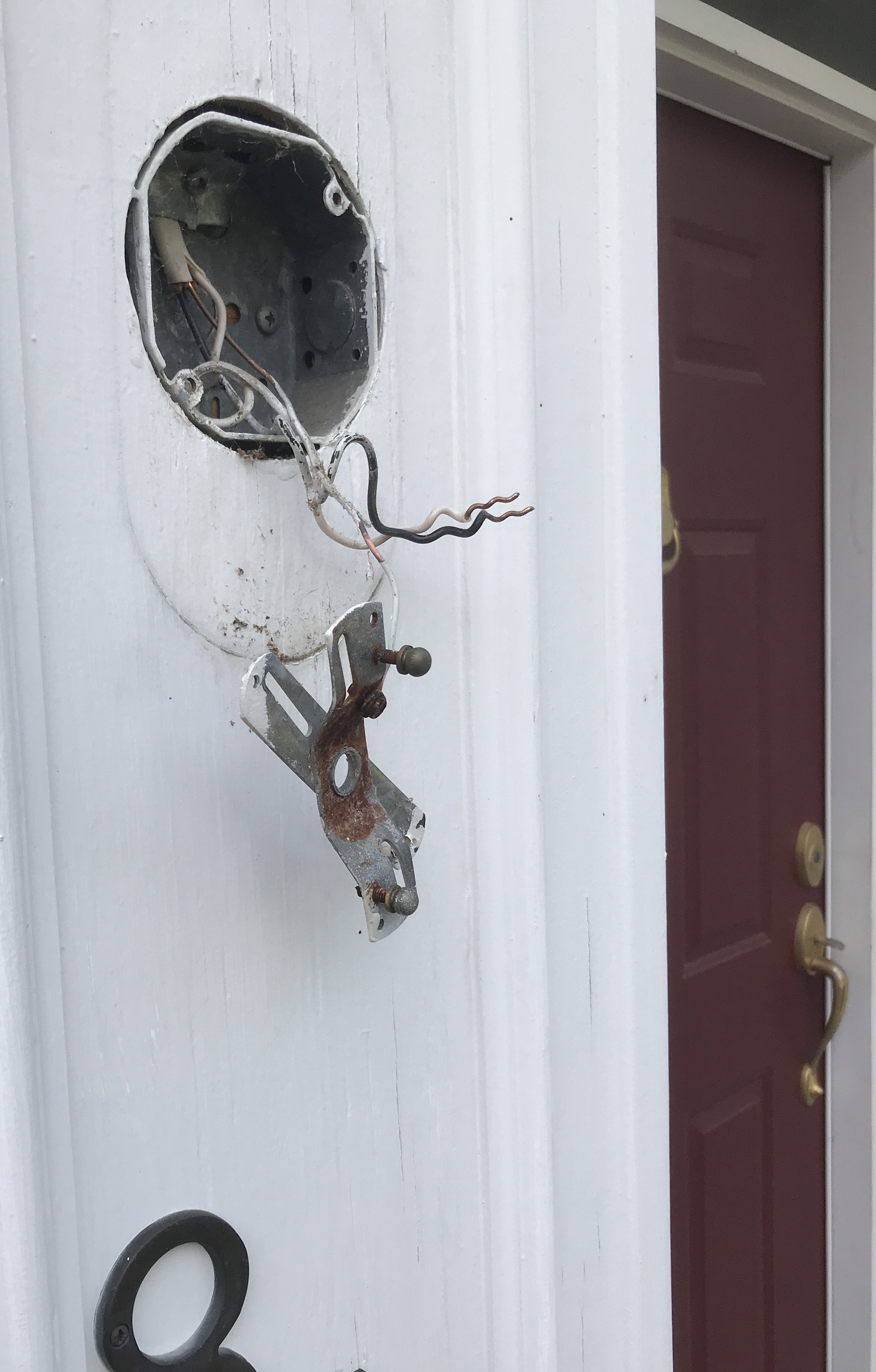 Upon closer inspection though, the two fixtures offered something of a case study in the adage “rust never sleeps.” In recent days, it became more and more clear that it was time for the old lanterns to go – a point that was underscored when I removed the first one from the portico…and it fell apart in my hands.