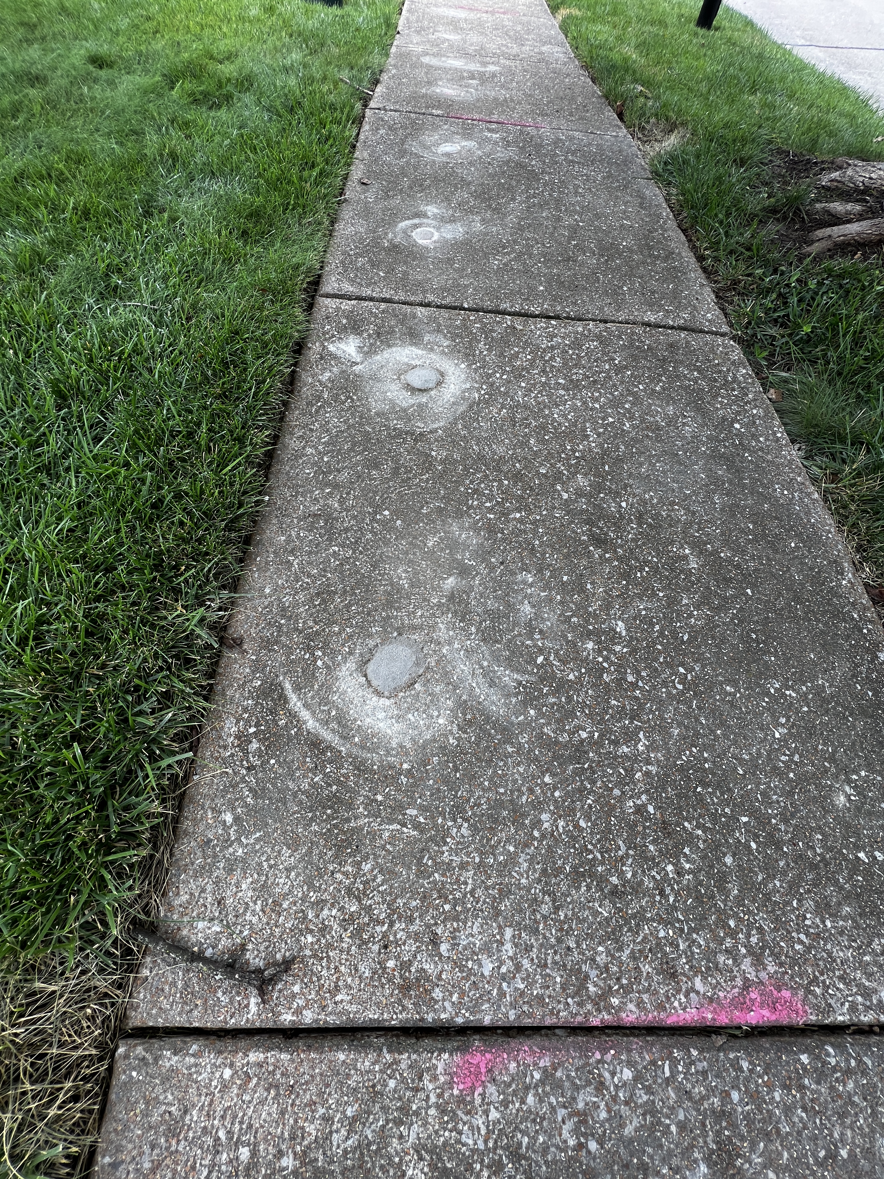 I’m glad for the mudjacking, I suppose. Still I can’t help but notice how it’s an imperfect fix: the fresh concrete plugs providing a stark contrast to the grimy material of the 30-year-old sidewalk into which they’ve been poured. Proof is now ever-present: this dwelling place is getting old.