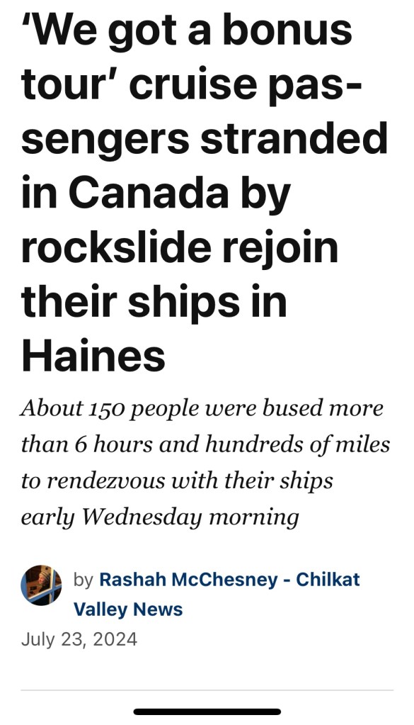 I wonder about this…because of a specific Alaskan annoyance that still sticks in my craw just a bit: Two different times during our recent trip, I found myself assigned to backward-facing seats on sight-seeing trains. Which is to say, I spent a fair amount of time listening to more-fortunate travelers “ooo” and “aahhh” as they gazed upon some natural spectacle they spied just ahead.