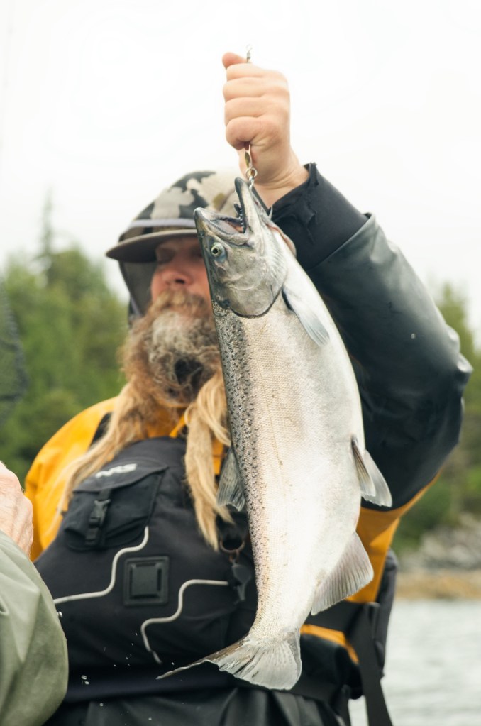 Only this time, saints be praised, I didn’t blow it. Our guide soon netted “my” fish – a handsome silvery King Salmon.