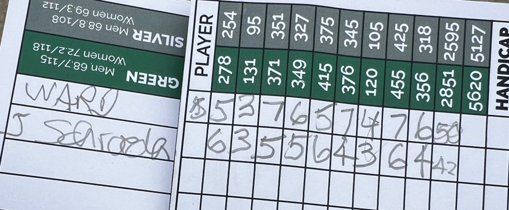 Some (many?) golfers would consider this a mediocre performance – but I’ll take a “42” any day. Once my handicap was applied, it netted out to a “27,” best in the League. A delightful consolation for one who loves the game, but nevertheless sports a handicap that is humblingly high.