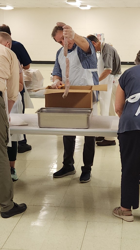 Later in the day, I returned for a second shift of volunteer duty…at the Sausage Wrap. And there I discovered two dozen more parishioners, most of them different than the folks I’d worked with on the morning shift…many of them from our Latino community.
