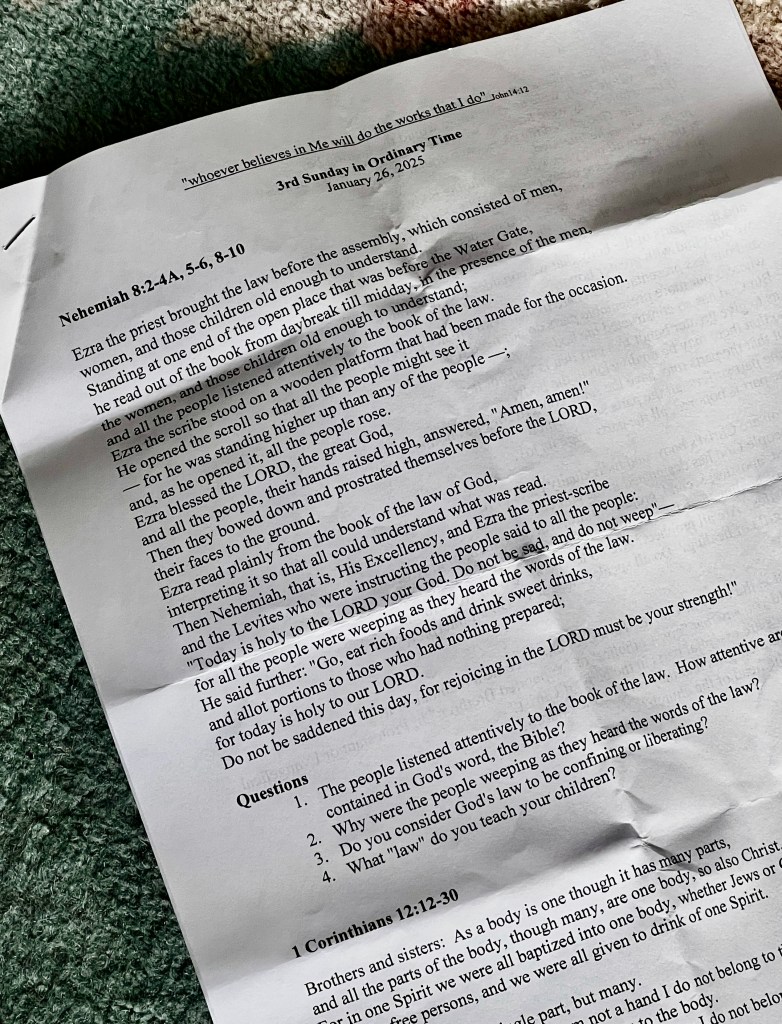 We were eight, maybe ten minutes in to our small group discussion when Jim spoke. “I think I can do this,” he said. And then he began reading aloud the scripture passage from Nehemiah we hear proclaimed at Mass today. He just jumped right in, started speaking – and we didn’t realize until later that we were witnessing a breakthrough in that moment.