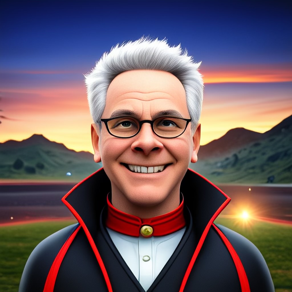 Judge for yourself. Here’s the AI-generated image of John…drawn in “sci-fi, sunset, vampire” mode: