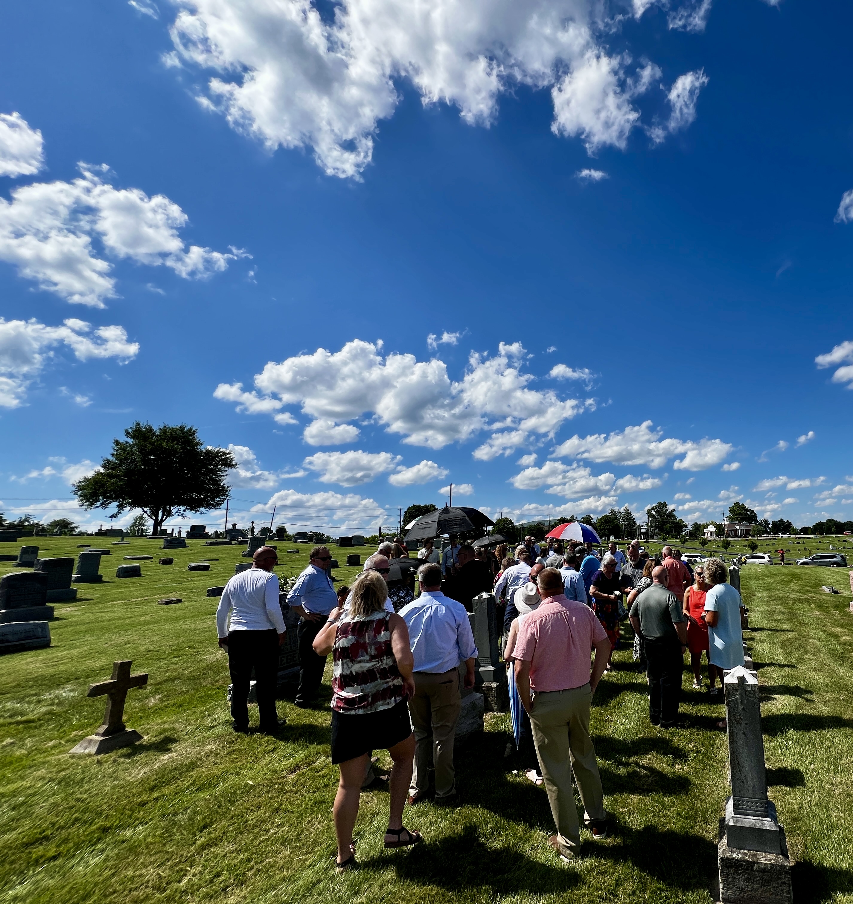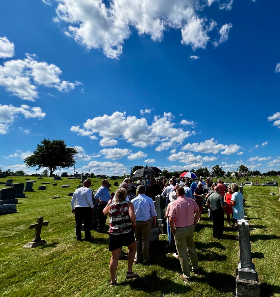 It happened at a cemetery the other day – where about three dozen folks gathered under a blazing summer sun to lay my dear uncle to rest. It was a remarkable sight, really: an actual factual crowd gathered to pay tribute to a man who died at 92. You’d expect to see a just handful there in other cases, for other men who’d outlived most of their friends and family. But Uncle Larry was blessed – as most of us in that cemetery crowd are – to be part of a huge and loving extended family. God’s grace showered upon us like a cloudburst, not just that day … but for all the decades of a very full life that preceded it.