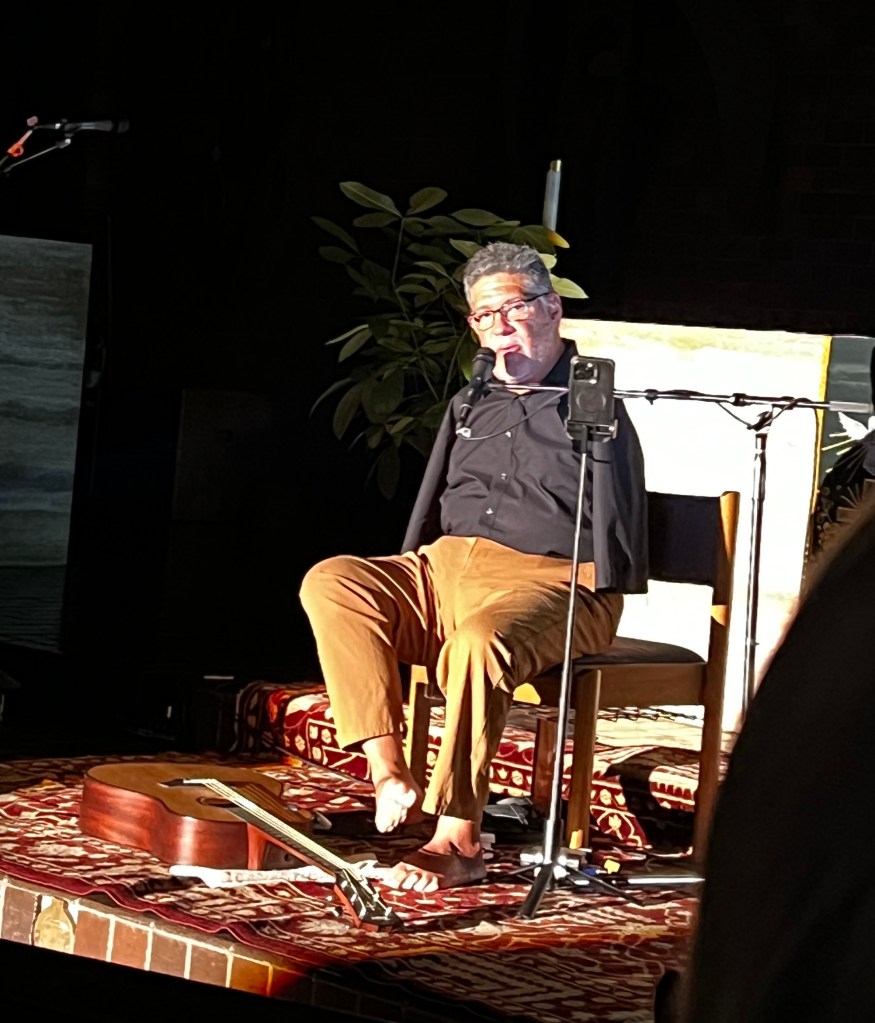 Well, I had a moment anyway. Tony Meléndez probably doesn’t remember it even happening. It was while his wife Lynn was at the mic, telling a few stories about their beautiful life together. Taking a break from his performance, Tony sat down right next to me, in the second pew.