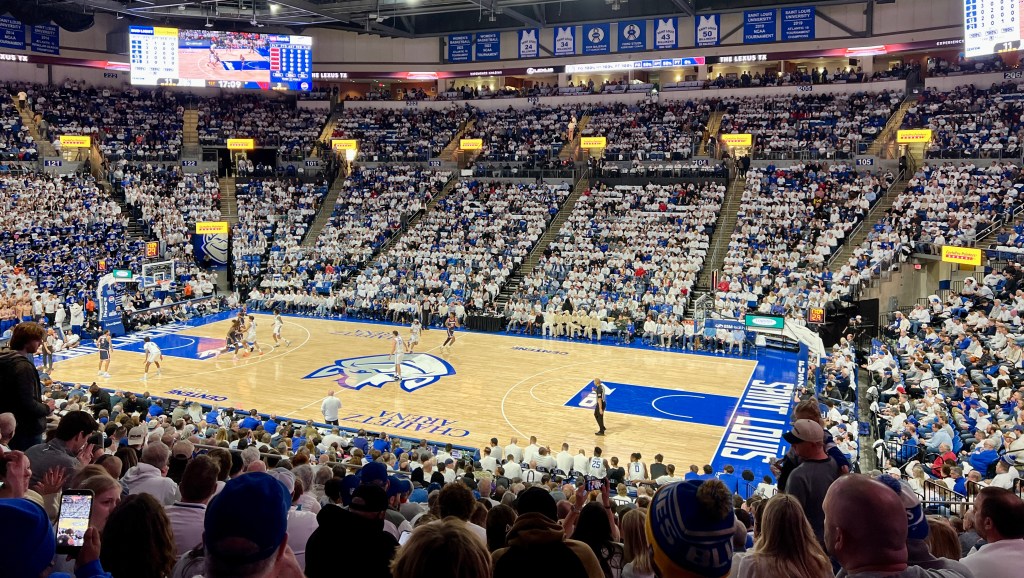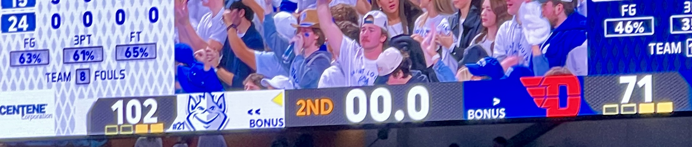 It’d been years, after all, since we’d even beaten this team … much less, pulverizing them by a 31-point margin. So getting to a hundo – the most points SLU had ever scored against UD in 75 previous meetings – why, that sounded like sweet music indeed.